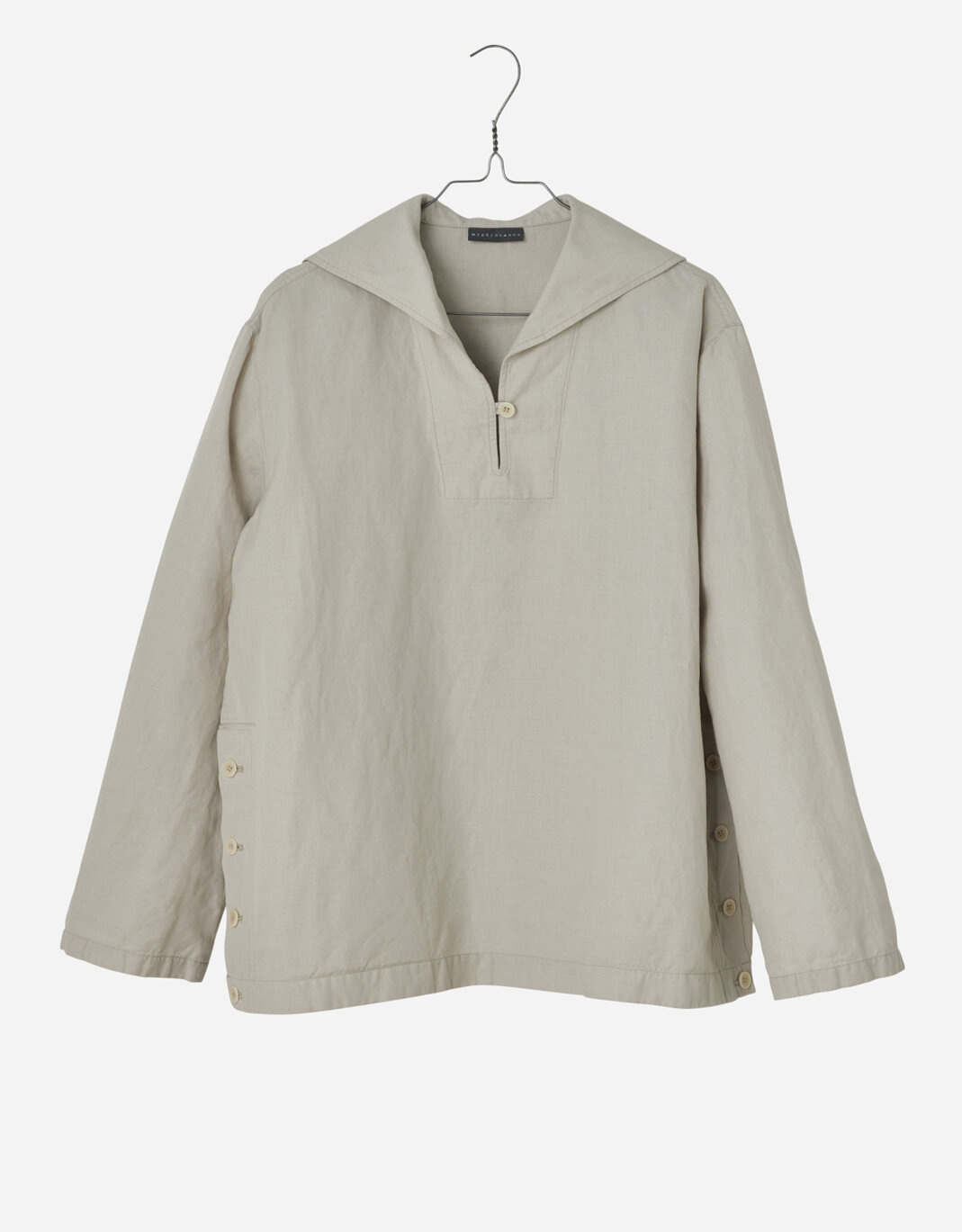 Create an accountthe sailor smock has a relaxed silhouette and is true to size... pair with any of the bottoms in the same material for a uniform-looking style... it allows for light layering and can be used both as an outdoor garment as well as indoors, making it an all year around piece... it is designed to comfortably slide over the head when opening the front button... measurements for chest and length are visible when selecting size...